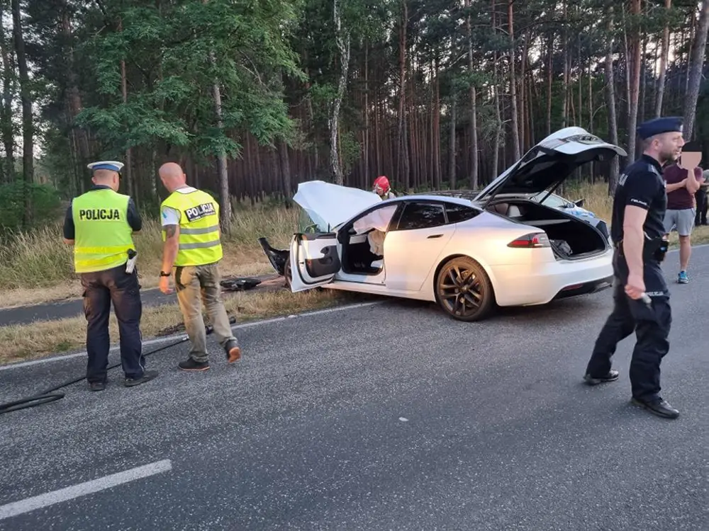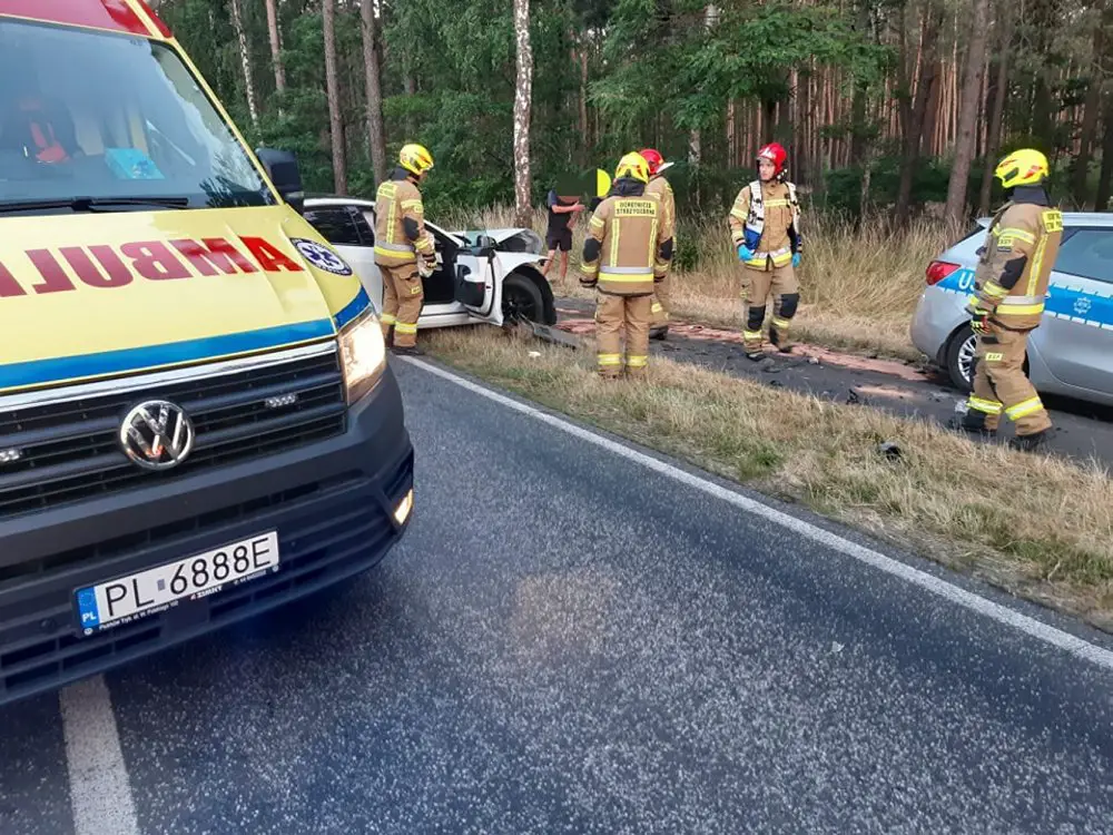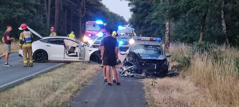 Do poważnego wypadku doszło w sobotę, 24 czerwca, na drodze koło miejscowości Święciechowa. Policyjny radiów zderzył się z teslą.