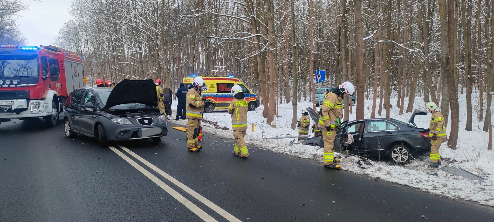 Kierujący Seatem podczas skręcania w lewo do lasu, wówczas najechał na niego kierujący Mercedesem. Kierujący Seatem to 43-letni mężczyzna z Leszna, który podróżował wraz z żoną i dwóją dzieci. Natomiast Mercedesem podróżował 21-letni mężczyzna z powiatu gostyńskiego. Oboje kierowców trafiło do szpitala mówi dla portalu wlkp112.pl Monika Żymełka, z leszczyńskiej policji