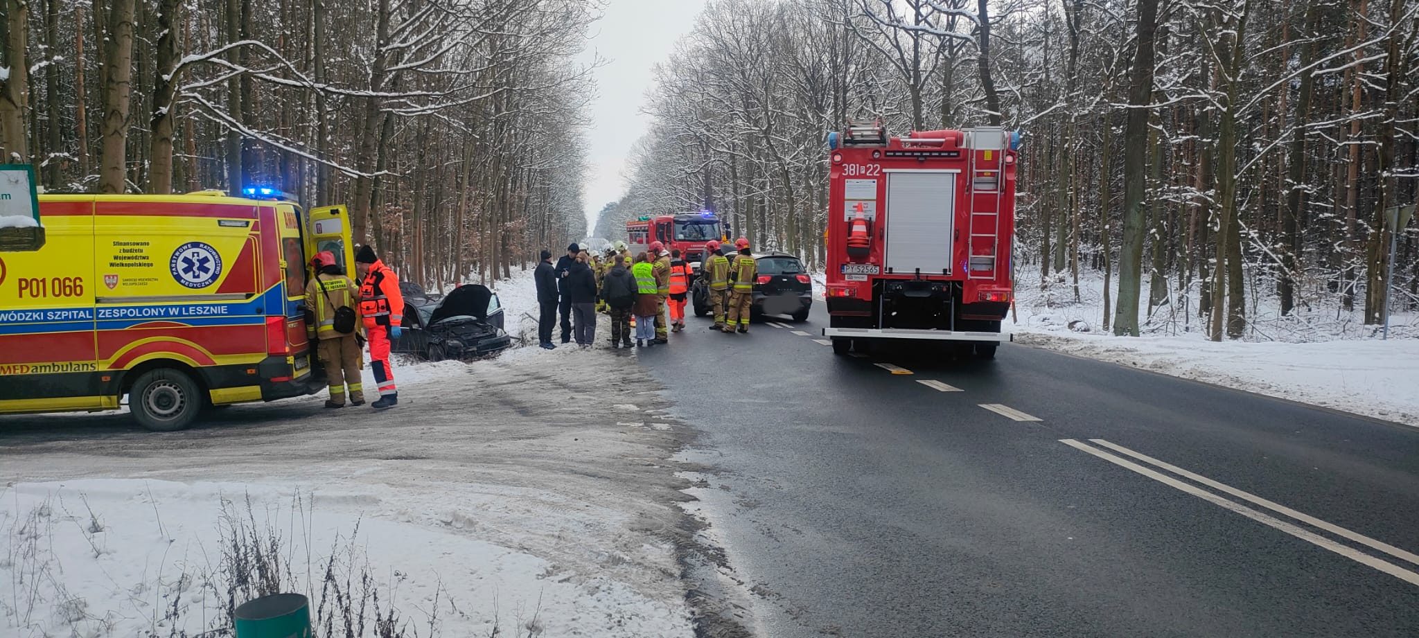 Wszystko wydarzyło się w niedzielę 16 lutego około godziny 12:30. Na miejsce natychmiast zadysponowano strażaków zawodowych z Jednostki Ratowniczo-Gaśniczej z Leszna, ochotników z Kąkolewa, Policję oraz dwa Zespoły Ratownictwa Medycznego.