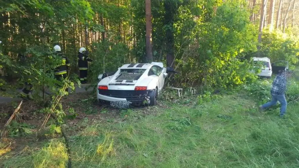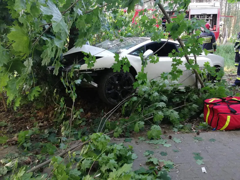 Lamborghini Gallardo i Ford Fiesta uczestniczyły w zdarzeniu drogowym do którego doszło w niedzielę, 31 maja 2020r., po godzinie 19. Auta poruszały się w tym samym kierunku drogą wojewódzką z Nądni w stronę Chlastawy.