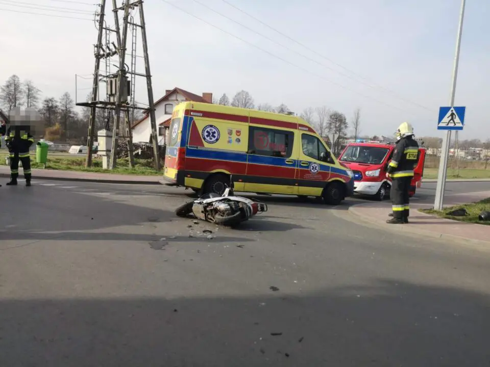 Do zdarzenia doszło 1 kwietnia br., przed godziną 9:00 wówczas dyżurny Nowotomyskich strażaków otrzymał zgłoszenie o wypadku drogowym z udziałem motoroweru oraz samochodu osobowego.