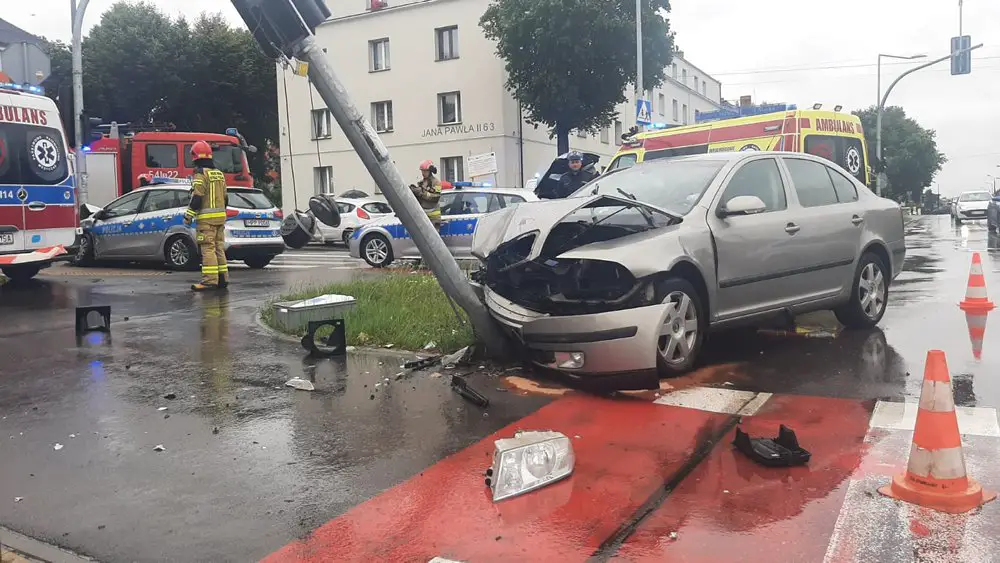 Dwaj policjanci zostali przewiezieni karetkami pogotowia ratunkowego do szpitala. Kierowca skody na szczęście nie odniósł żadnych obrażeń.