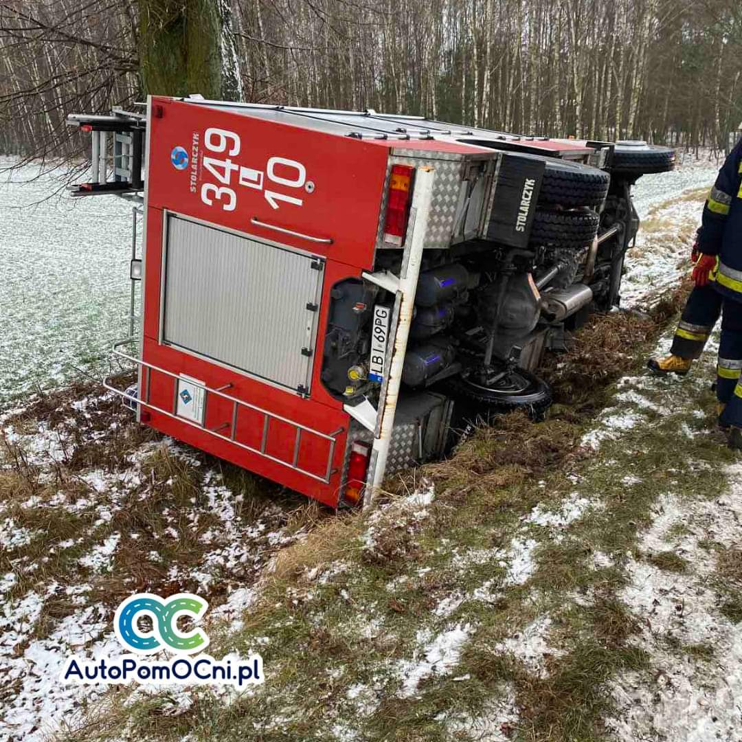 Strażacy ochotnicy z OSP Janów Podlaski jadąc do wypadku na oblodzonej drodze w pewnym momencie wpadli w poślizg, po czym zderzyli się z samochodem osobowym i wypadł z drogi, po czym przewrócił się na bok. Na całe szczęście nikomu nic się nie stało.