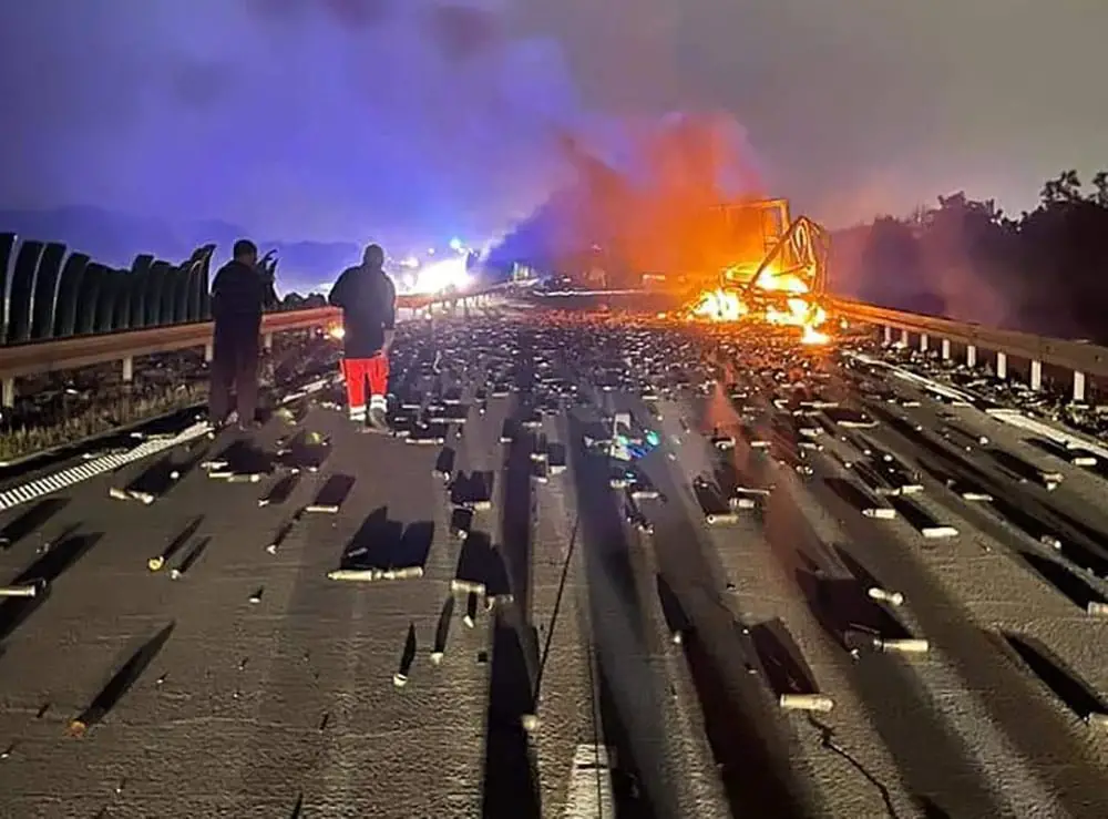 Do wypadku doszło na odcinku pomiędzy węzłami Legnica Wschód oraz Legnickie Pole. Na pasach w kierunku granicy zderzyły się dwie ciężarówki. Jedna od razu stanęła w płomieniach. Płonąca ciężarówka wiozła dezodoranty.