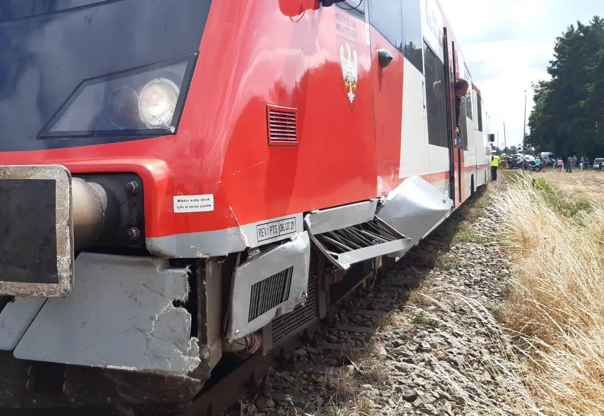 Auto osobowe zostało poważnie uszkodzone, jednakże kierujący nim mężczyzna szczęśliwie nie odniósł poważniejszych obrażeń. Maszynista oraz pasażerowie szynobusu również wyszli z opresji bez szwanku.