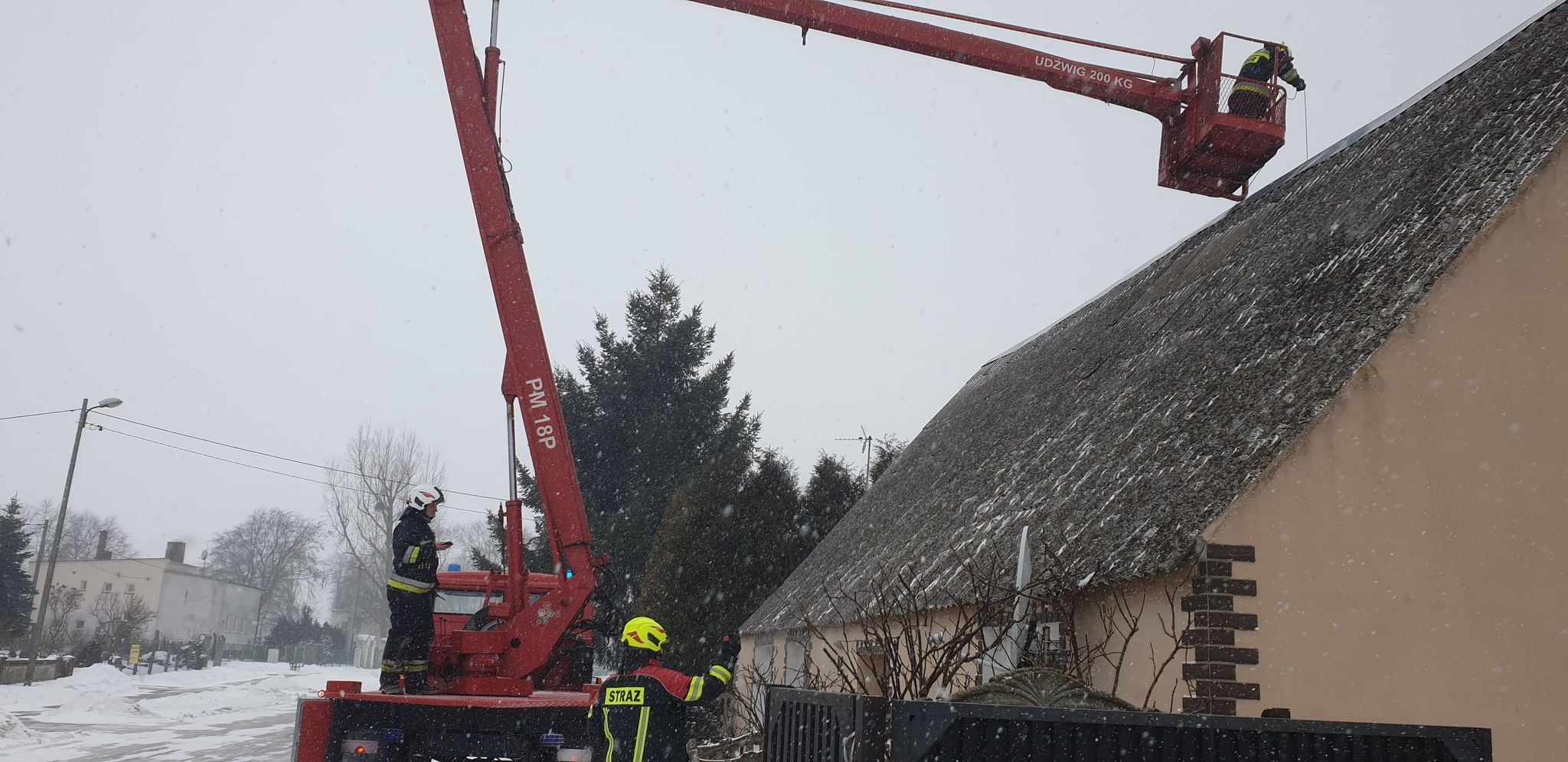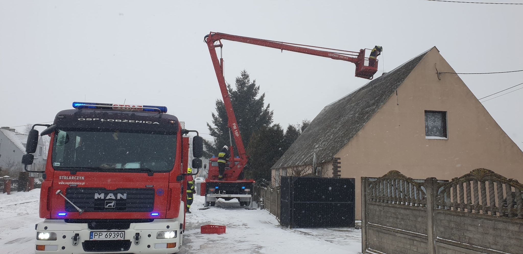 Strażacy po przybyciu na miejsce zdarzenia przystąpili do zabezpieczenia terenu działań i rozstawiania podnośnika, a następnie ugaszono palenisko oraz komin wyczyszczono za pomocą zestawu kominiarskiego.