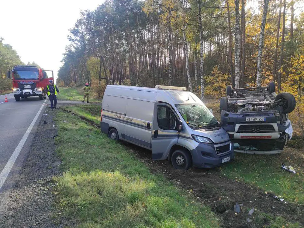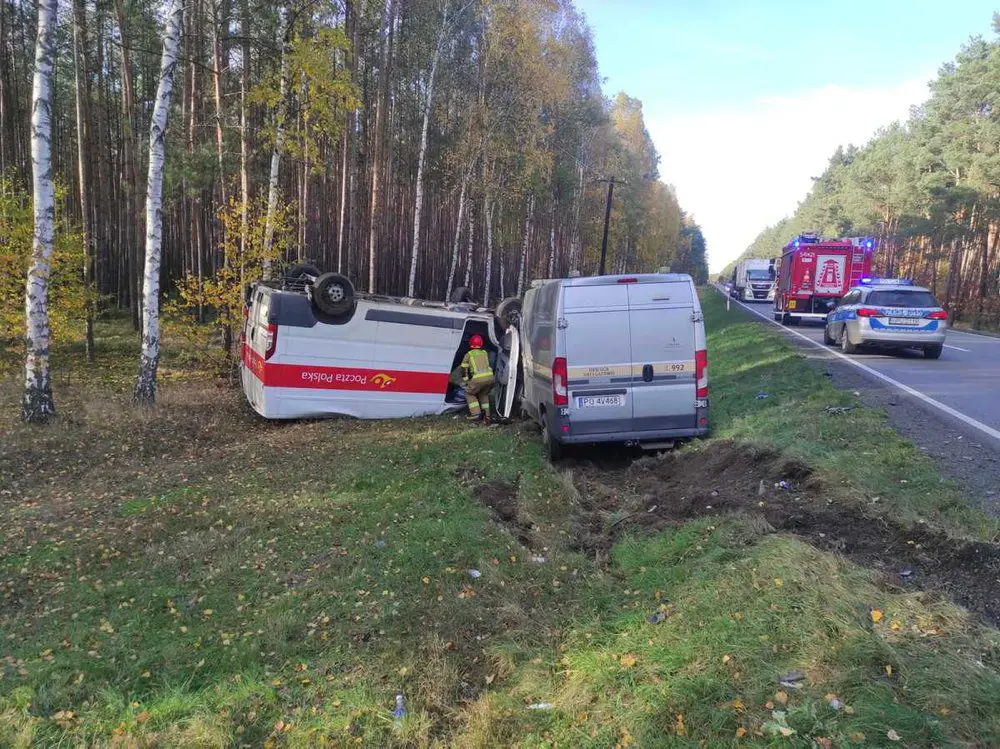 Wtedy doprowadził do zderzenia się Citroen Jumper poczty, którym kierował 21-letni mieszkaniec Ostrzeszowa. Oba pojazdy wypadły z drogi, a bus poczty dachował.