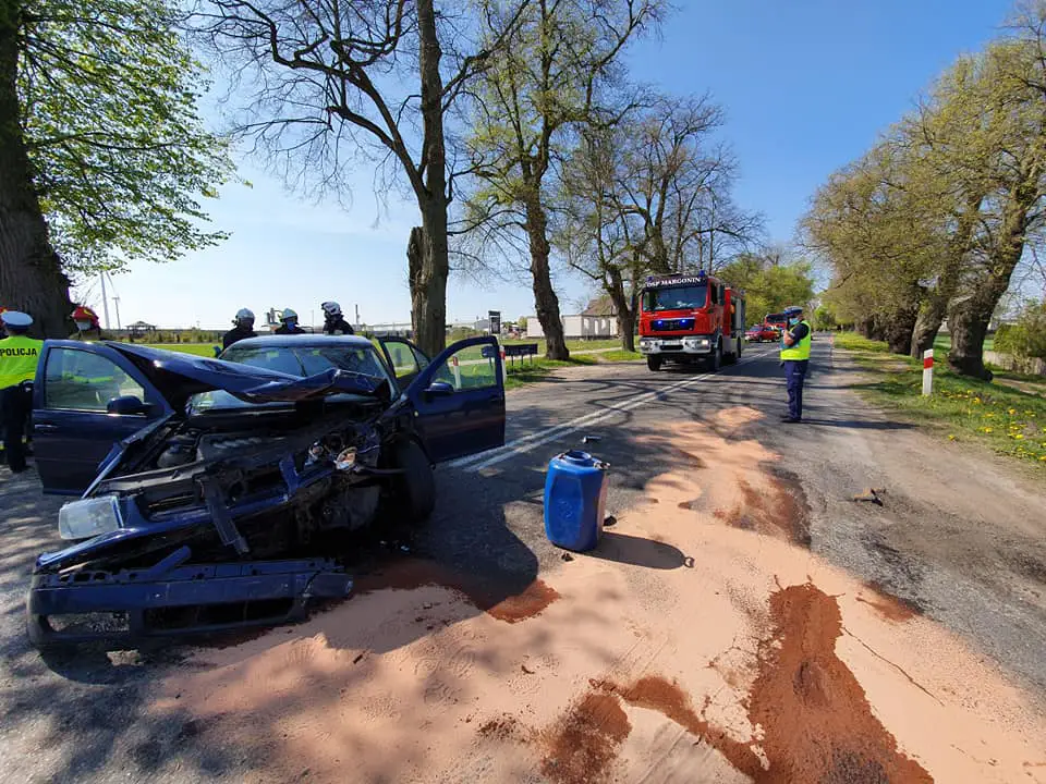 Do wypadku doszło, 28 kwietnia, na drodze miejscowości Margonin. Czołowo zderzyły się dwa samochody. Dwie osoby trafiły do szpitala.