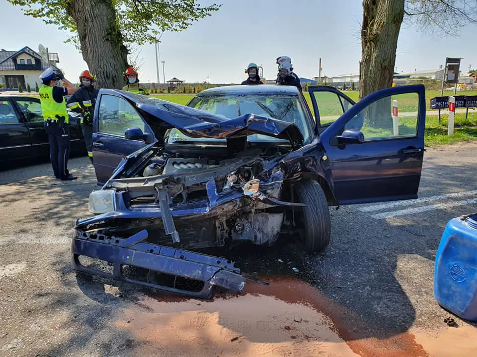 Do zdarzenia doszło w Margoninie na skrzyżowaniu ul. Kościuszki z drogą gminną. Ze wstępnych ustaleń do zdarzenia doszło poprzez wymuszenie pierwszeństwa. Kierowcy obydwóch pojazdów wydostali się z pojazdów o własnych siłach. Obojgu kierującym udzielono pomocy na miejscu zdarzenia, następnie przetransportowano ich do szpitala na podstawowe badania. Do działań strażaków należało zabezpieczenie miejsca zdarzenia,odłączenie akumulatorów w pojazdach oraz sorpcja płynów eksploatacyjnych.