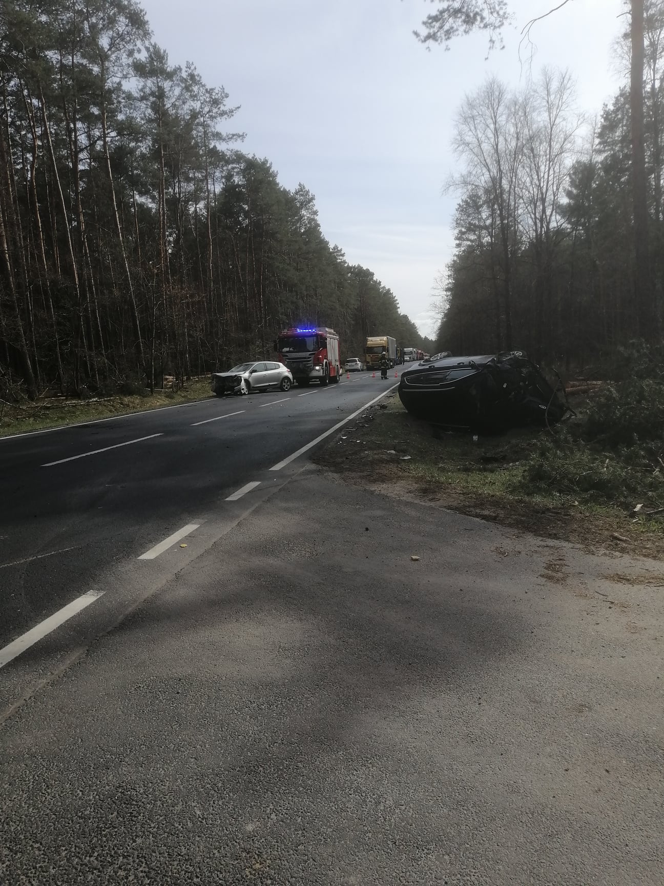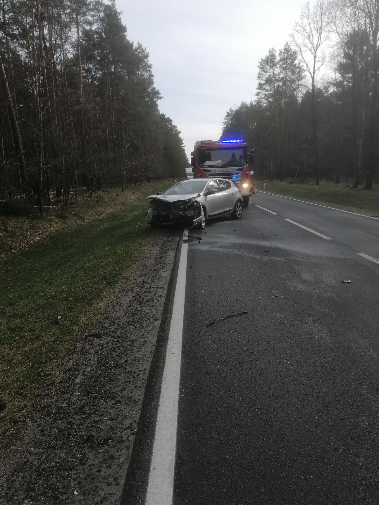 Na miejsce zadysponowano druhów z OSP w Starej Łubiance oraz dwa zastępy z JRG1 w Pile. Po dotarciu we wskazane miejsce strażacy zastali na miejscu dwa rozbite samochody osobowe. W wyniku zdarzenia dwie osoby zostały przetransportowane do szpitala.