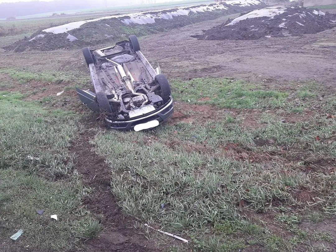 Po dojdzie na miejsce pierwszych służb potwierdzono zgłoszenie, że doszło do zderzenia dwóch pojazdów. Natomiast jeden z pojazdów wpadł do rowu i dachował.