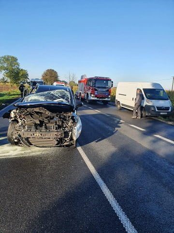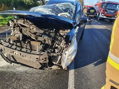 Na drodze doszło do zderzenia samochodu osobowego z ciężarowym. Kiedy na miejsce dojechali strażacy zobaczyli mocno rozbity samochód. Na szczęście, mimo groźnie wyglądającego zdarzenia, nikomu nic się nie stało. Na drodze są utrudnienia w ruchu. Został wprowadzony ruch wahadłowy.