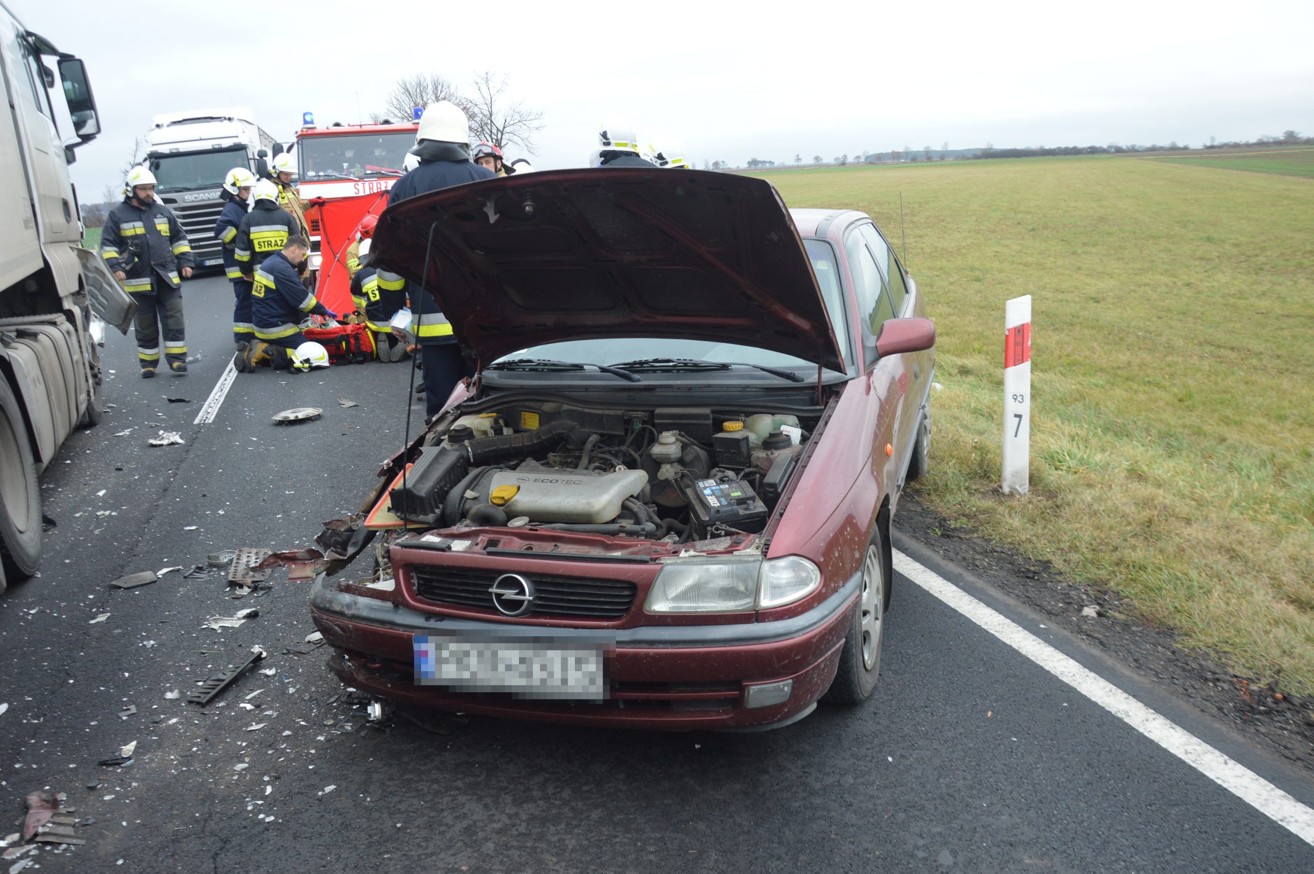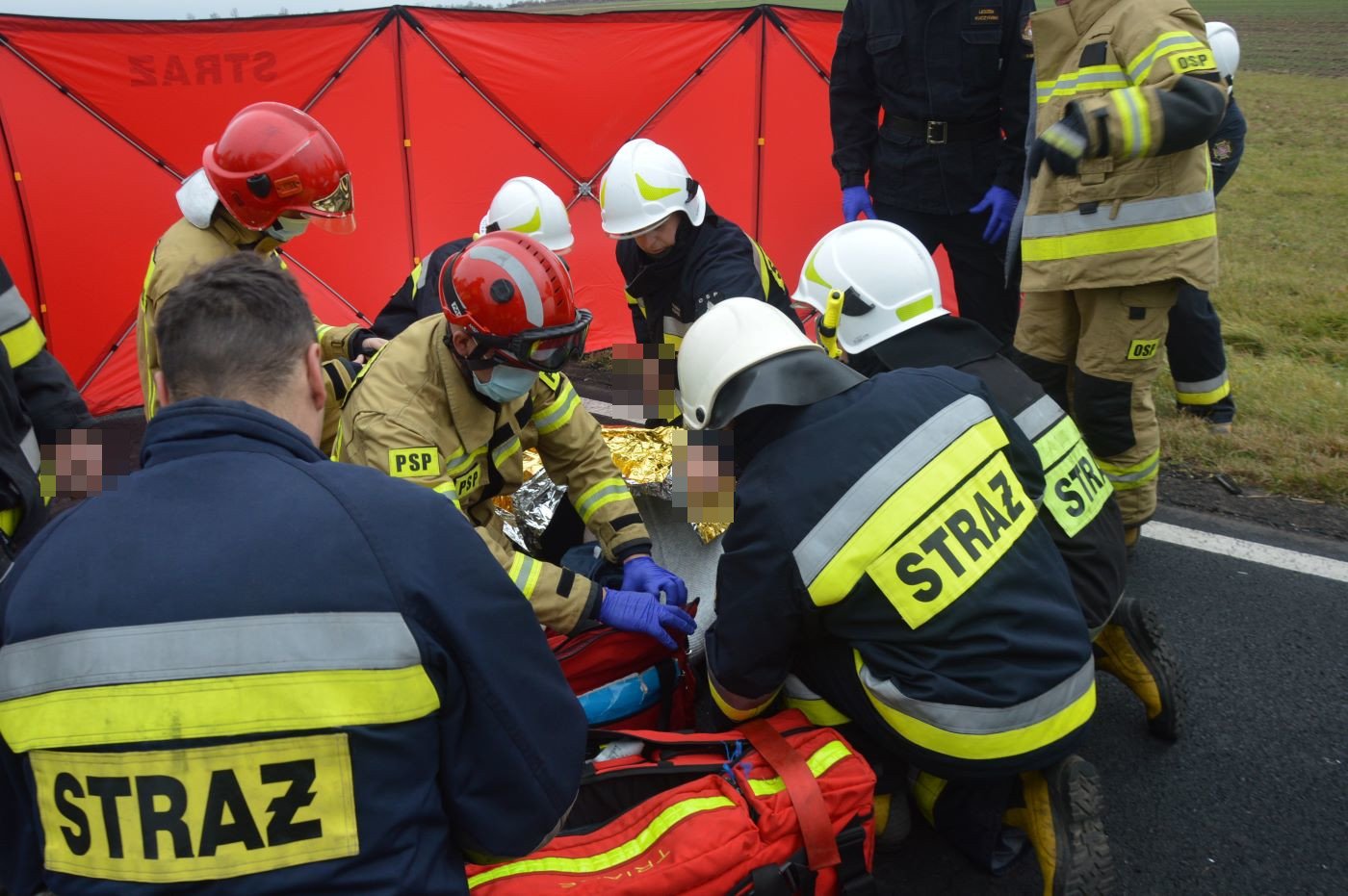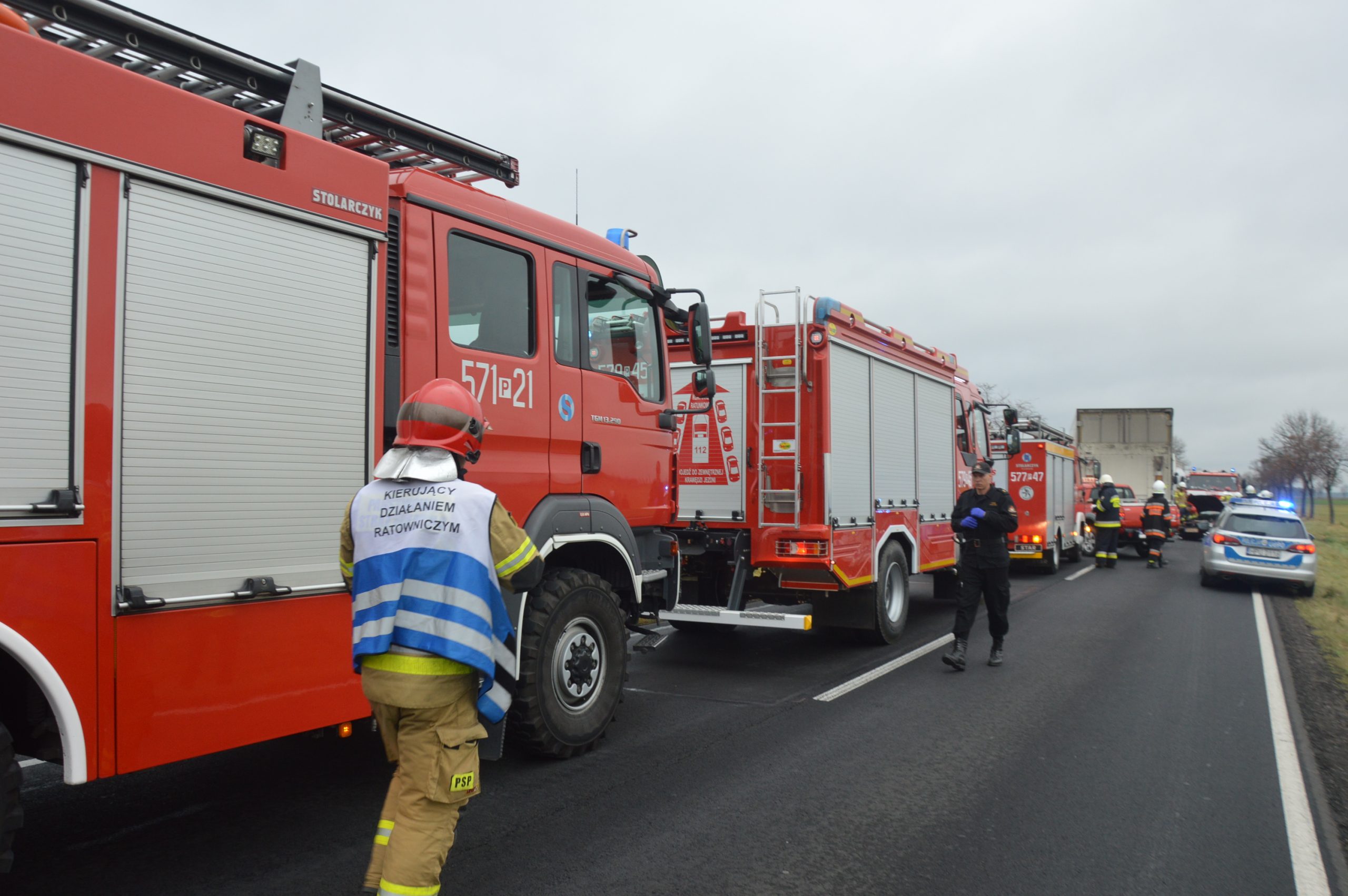Po dotarciu pierwszego zastępu straży na miejsce zastano dwa uszkodzone pojazdy, które całkowicie blokowały drogę. W samochodzie osobowym siedziała kobieta, przytomna i świadoma. Strażacy zabezpieczyli teren działań i w tym samym czasie przystąpili do udzielania pomocy kierującej. Mieszkankę gminy Kobylin ewakuowano z pojazdu, a następnie przekazano przybyłemu na miejsce Zespołowi Ratownictwa Medycznego. Ostatecznie kobietę przetransportowano do szpitala w Rawiczu.