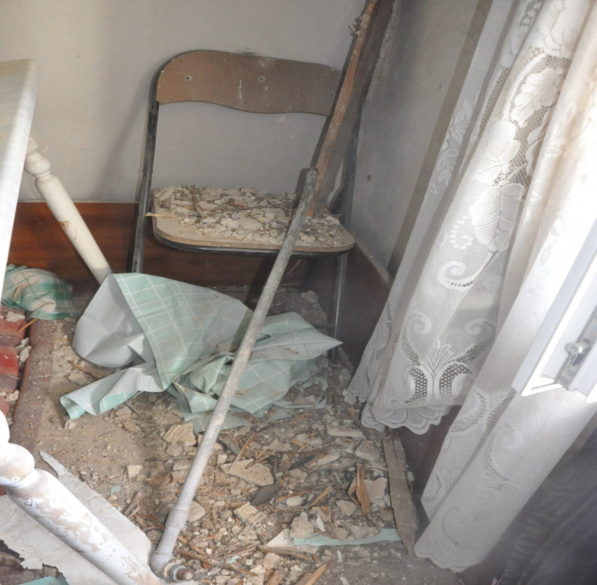Kiedy ścigany zorientował się, że ten pomysł „nie wypali” postanowił wybić dziurę w stropie i przez nią uciec na dach.