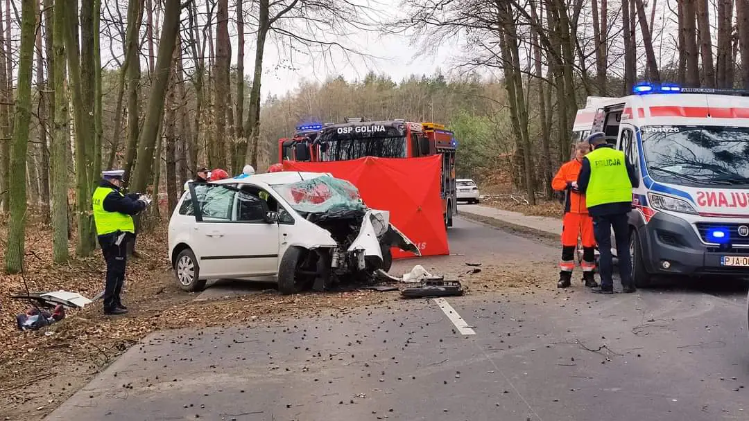 29-letnk mężczyzna, mieszkaniec gminy Jarocin kierując samochodem marki Ford C-max, jadąc w kierunku Goliny, z nieustalonych przyczyn zjechał na przeciwległy pas drogi i uderzył w przydrożne drzewo.