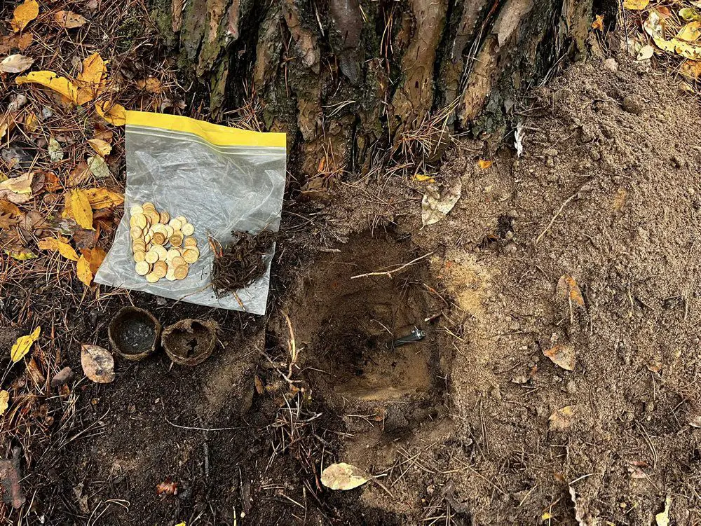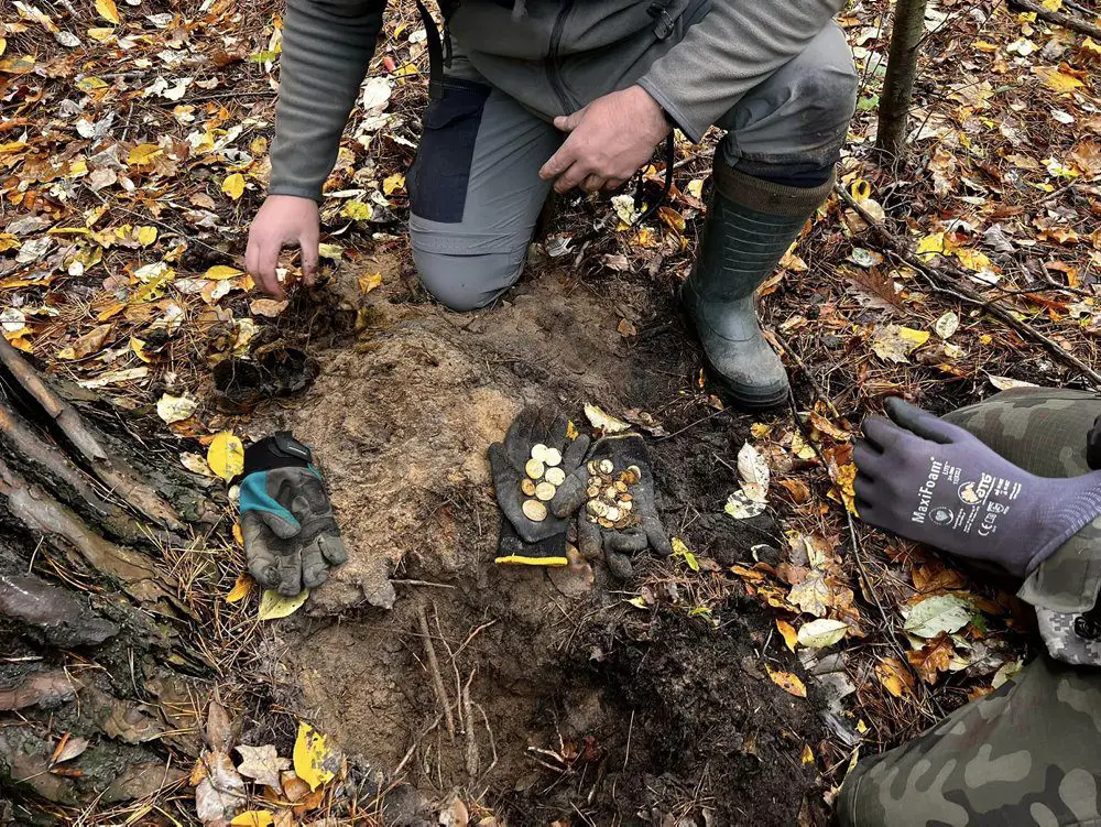 Stowarzyszenie Szczecińska Grupa Eksploracyjna odkopało skarb. Złote monety o próbie 900,były zakonne pod drzewem w metalowej puszce. W środku było 70 rożnych monet.
